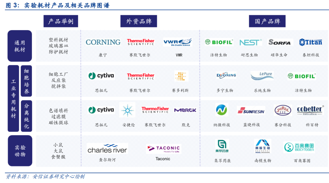 附錄來源:安信證券《生命科學產業鏈上游系列研究之科研產品圖譜篇:生物研發包羅萬象,國產化進程加速》。
