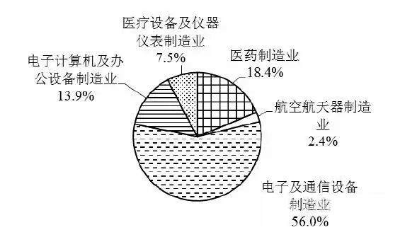 圖3高技術(shù)產(chǎn)業(yè)主營業(yè)務(wù)收入按行業(yè)分布(2015年)