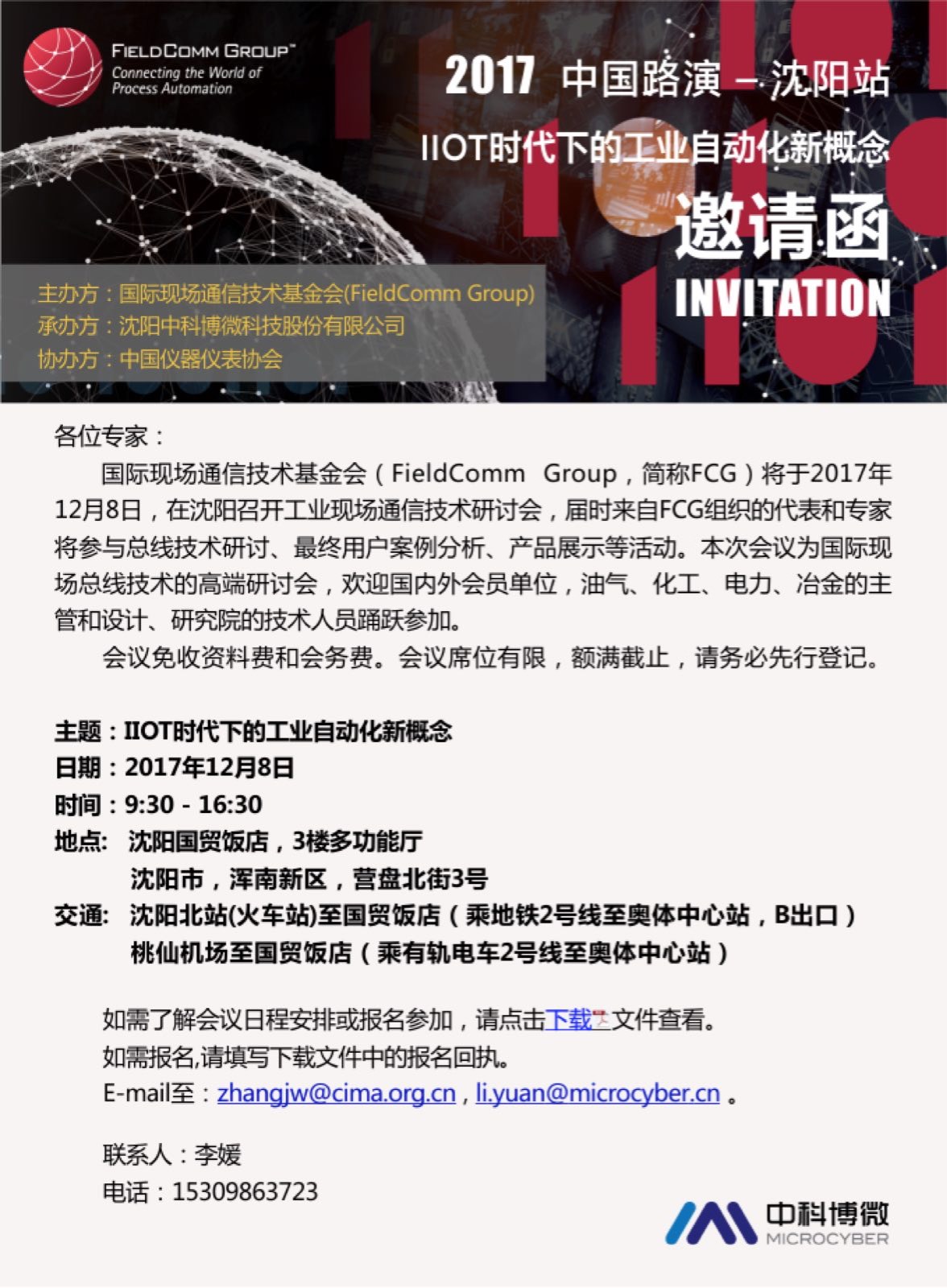 報名信息請 E-mail至:zhangjw@cima.org.cn,li.yuan@microcyber.cn