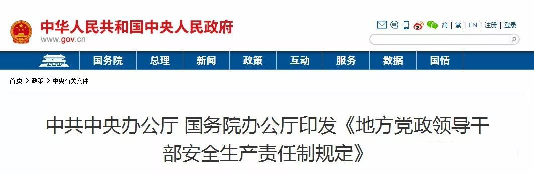 中共中央辦公廳 國務院辦公廳日前印發《地方黨政領導干部安全生產責任制規定》,并發出通知,要求各地區各部門結合實際認真遵照執行。