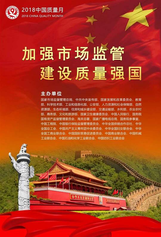 2018年9月,市場(chǎng)監(jiān)管總局聯(lián)合中共中央宣傳部、教育部、工業(yè)和信息化部、銀保監(jiān)會(huì)、全國(guó)總工會(huì)、共青團(tuán)中央、機(jī)械工業(yè)聯(lián)合會(huì)等共34個(gè)部門,以“加強(qiáng)市場(chǎng)監(jiān)管 建設(shè)質(zhì)量強(qiáng)國(guó)”為主題,共同部署開展2018年全國(guó)“質(zhì)量月”活動(dòng)。