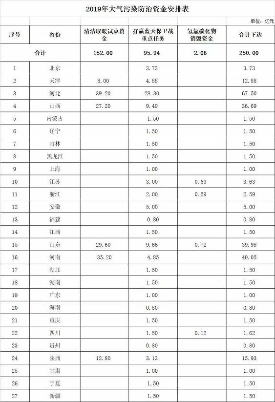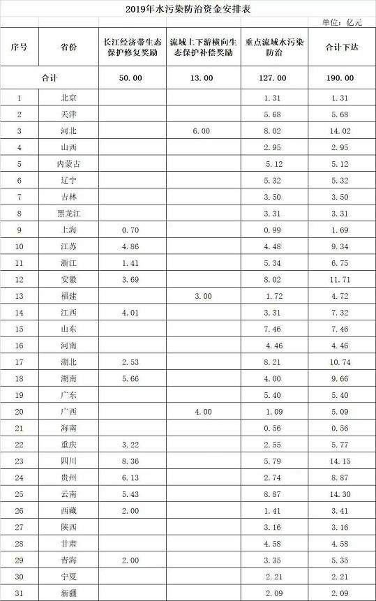 近日,財政部接連發布《財政部關于下達2019年度大氣污染防治資金預算的通知》、《財政部關于下達2019年度水污染防治資金預算的通知》、《財政部關于下達2019年土壤污染防治專項資金預算的通知》等,下達各省大氣、污水和土壤三項污染防治資金預算,合計490億元。