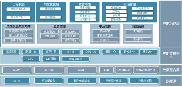 項目圍繞新安化工集團馬目智能園區的多個公司的隱患管理、作業審批、承包商管理、預警信息管理、事故管理等業務流程規范進行梳理、固化,保障園區各企業以統一的安全生產標準規范進行生產運營活動,以安全可視化一張圖管控、雙控體系平臺化管理、現場作業人機結合閉環、一站式應急協同指揮等應用促使安全生產標準化快速落地。