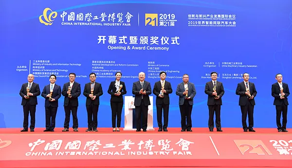 第十屆全國政協副主席、中國工程院原院長徐匡迪為10家獲獎單位頒發“中國國際工業博覽會大獎”。中國工程院院長李曉紅,上海市委副書記、市長應勇致辭。
