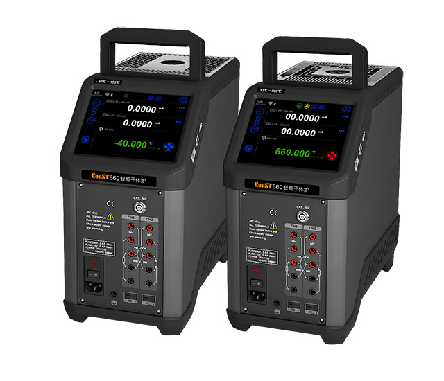 康斯特公司在2017年進(jìn)行了干體式溫度校準(zhǔn)器的技術(shù)研發(fā),推出了最新一代智能溫度校準(zhǔn)設(shè)備。ConST660應(yīng)用多項(xiàng)創(chuàng)新技術(shù),具有升降溫速度快、抗干擾能力強(qiáng)、環(huán)境適應(yīng)性好,控溫區(qū)間寬,溫場(chǎng)均勻性好等特點(diǎn),采用全觸屏操作,伸縮式提手設(shè)計(jì),支持外置標(biāo)準(zhǔn)RTD控溫方式,同時(shí)具備兩個(gè)被檢通道。ConST660的出現(xiàn)有望改變了國(guó)外產(chǎn)品在我國(guó)一枝獨(dú)秀的銷售局面。