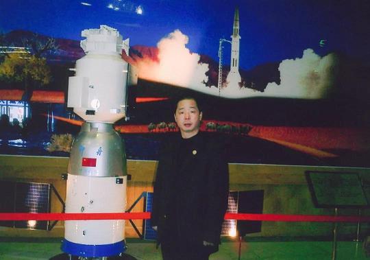 神五發射期間,胡成中是唯一受邀現場觀禮的民營企業嘉賓。圖為其在酒泉衛星發射中心留影