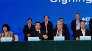 由左至右依次為:先河集團副總裁范朝、SCI總裁Mark、先河集團國際事務主管王江玲