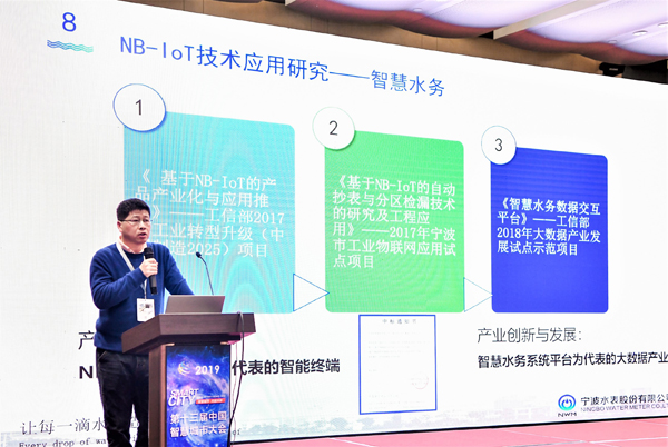 寧波水表股份有限公司所屬浙江省水表研究院院長婁嘉駿博士應邀參會,并在“智慧水務應用論壇” 中做了主題為“NB-IOT技術(shù)在智慧供水中的應用探討”的演講。婁院長圍繞企業(yè)概況、主要技術(shù)與產(chǎn)品、NB-IOT產(chǎn)品設(shè)計、NB-IOT產(chǎn)品應用等四個方面進行了闡述,旨在進一步加強與行業(yè)專家、學者的交流與合作,共同探討新形勢下智慧水務行業(yè)的發(fā)展之路。