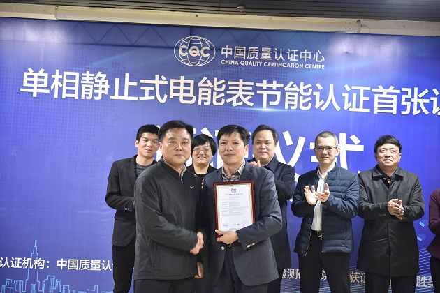 3月14日,威勝集團的單相電子式費控電能表和兩款單相費控智能電能表獲中國質量認證中心頒發的國內首張單相靜止式電能表節能認證證書。