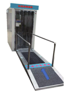 快速消毒通道,360度無死角消毒,可快速切斷病毒傳播,避免由體表攜帶病毒到新的區域。快速消毒通道由鞋底消毒和體表消毒兩部分組合使用。鞋底消毒指人員通過斜坡到達通道口時系統自動感應并啟動黑色區的鞋底消毒區進行消毒,消毒完成后再吸干區停留2秒即完成鞋底消毒;體表消毒指人員通過鞋底消毒區后進行體表消毒通道,通道內的符合消毒劑360度無死角的對體表一份和裸露皮膚進行接觸消毒,只需在該區域停留10秒即可殺滅99.9%的細菌和病毒。