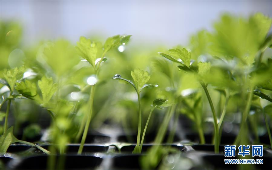 這是2月22日在寧夏銀川市賀蘭縣新平現(xiàn)代農(nóng)業(yè)示范園區(qū)蔬菜育苗大棚里拍攝的芹菜幼苗。
