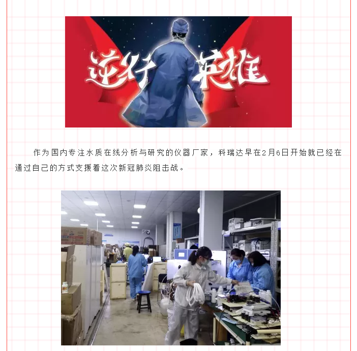 2月9日,第一時間與園區(qū)領(lǐng)導申請復工復產(chǎn)。加班加點,生產(chǎn)余氯在線分析儀,2月12日派物資專車馳援武漢,2月13日到達龔家?guī)X收費站,完成無接觸交貨;