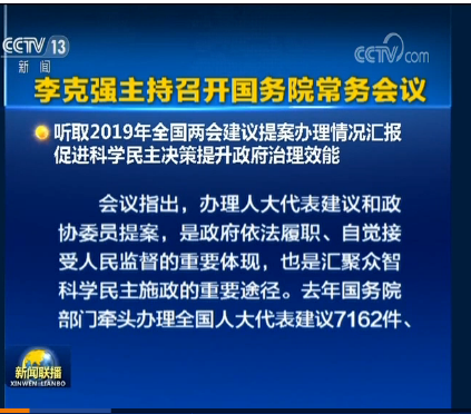 聽取2019年全國兩會(huì)建議提案辦理情況匯報(bào) 促進(jìn)科學(xué)民主決策提升政府治理效能