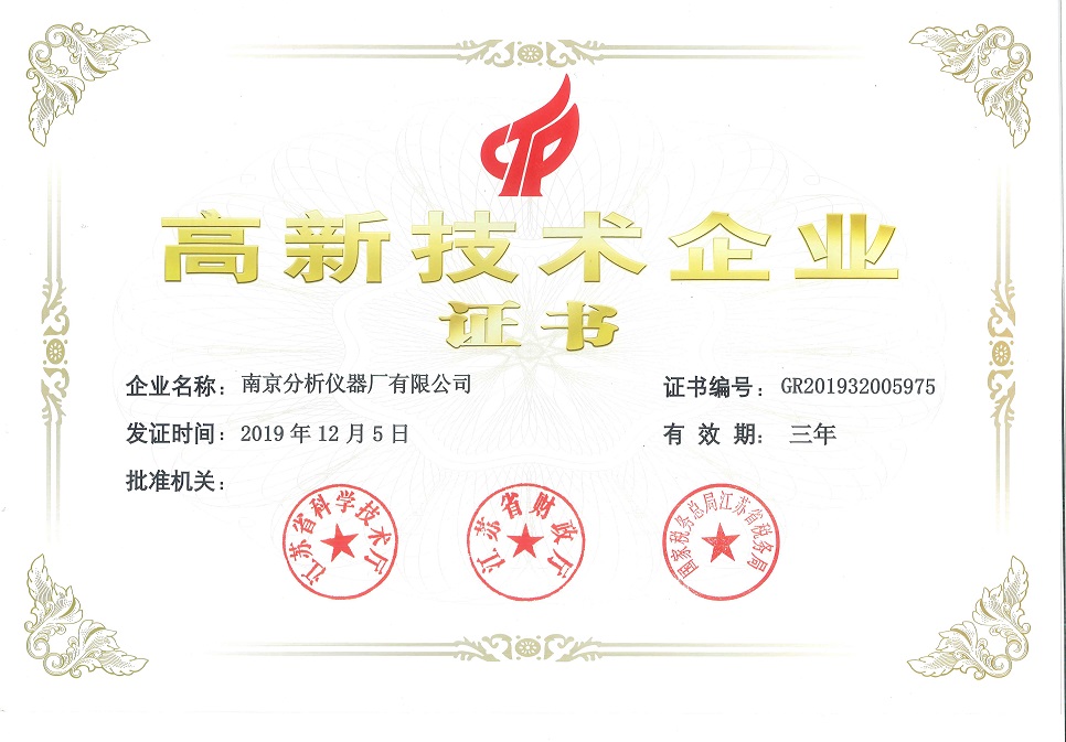 南京分析儀器廠(chǎng)有限公司再獲國(guó)家高新技術(shù)企業(yè)稱(chēng)號(hào)