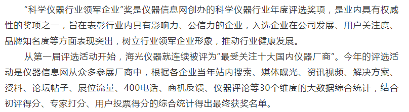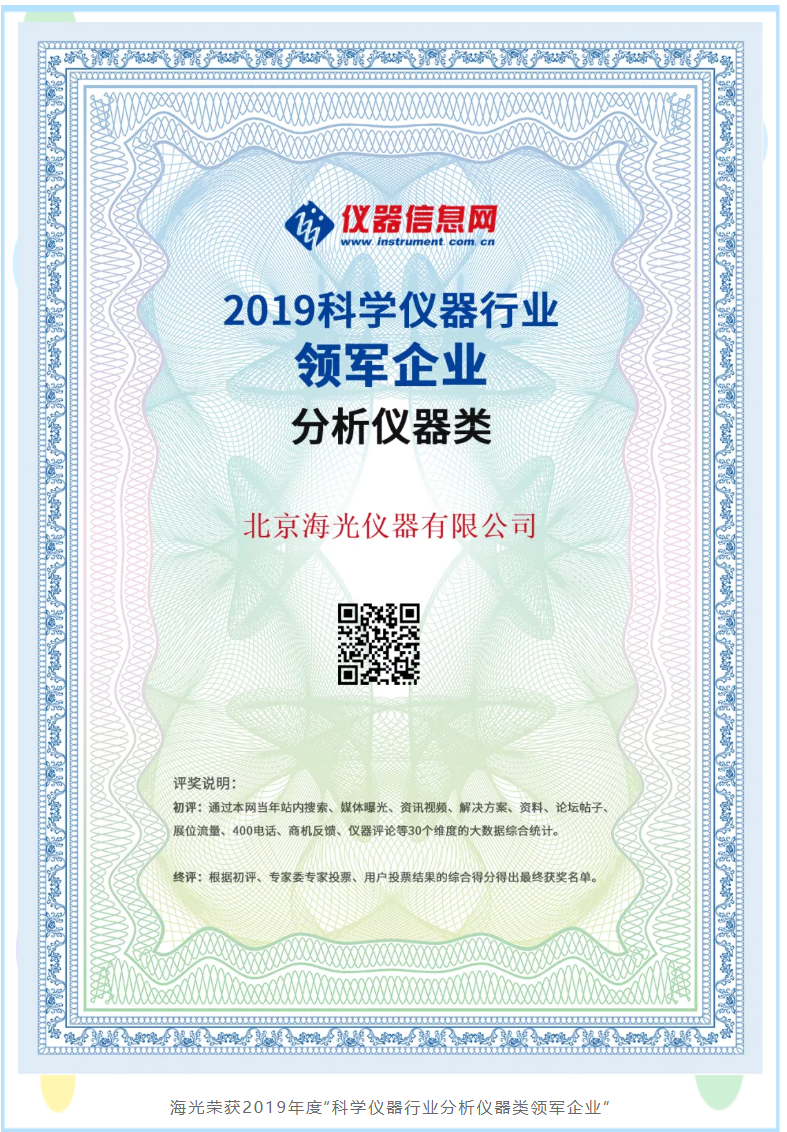 北京海光儀器連續(xù)13年榮獲“科學儀器行業(yè)領軍企業(yè)”