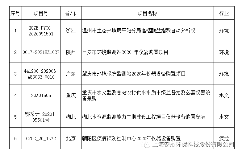 近期安杰科技APA-500全自動高錳酸鹽指數(shù)分析儀在環(huán)境、水文、疾控等行業(yè)的中標信息: