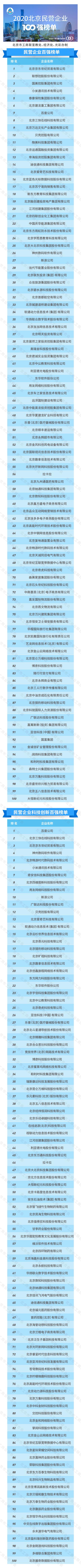 10月10日下午,北京市工商聯發布了2020北京民營企業百強榜單,同時發布的還有民營企業科技創新百強、民營企業文化產業百強、民營企業社會責任百強榜單,以及今年新增加的民營企業中小百強榜單。