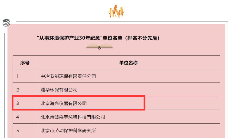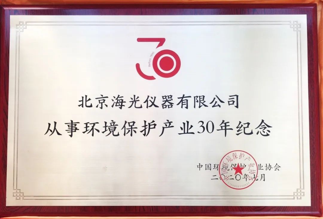 海光儀器喜獲“從事環境保護產業30年紀念”榮譽