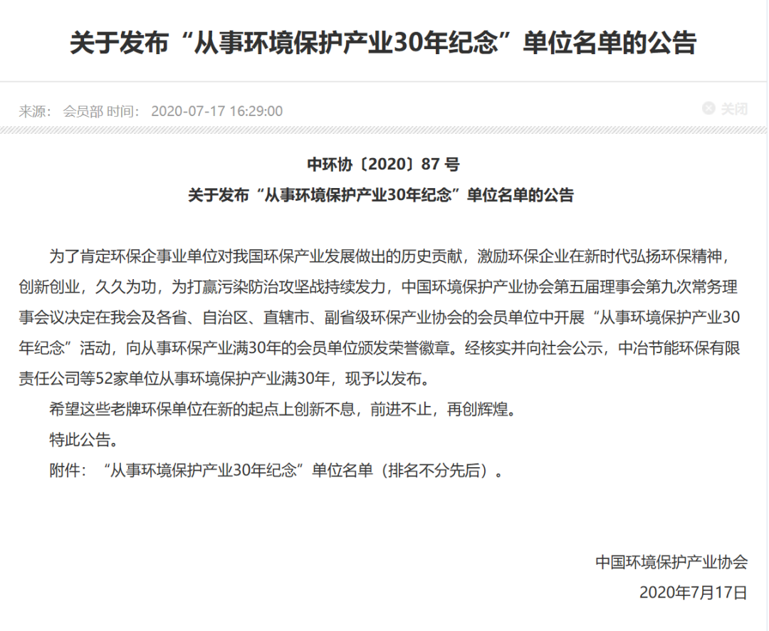 為了肯定環保企事業單位對我國環保產業發展做出的歷史貢獻,激勵環保企業在新時代弘揚環保精神,創新創業,久久為功,為打贏污染防治攻堅戰持續發力,中國環境保護產業協會組織開展了“從事環境保護產業30年紀念”活動。經協會審核、評選、公布,最終在全國各省、自治區、直轄市、副省級環保產業協會的會員單位中評選出52家單位,并于近日為入選單位頒發了榮譽獎牌。海光公司喜獲該榮譽。