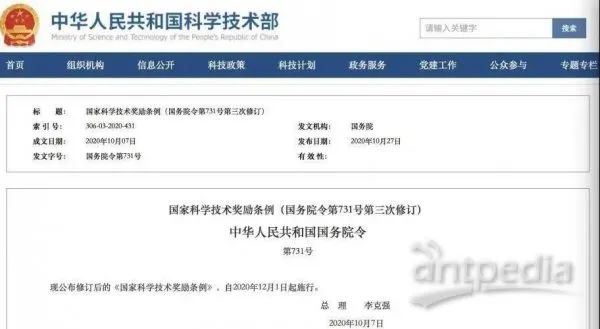 現公布修訂后的《國家科學技術獎勵條例》,自2020年12月1日起施行。