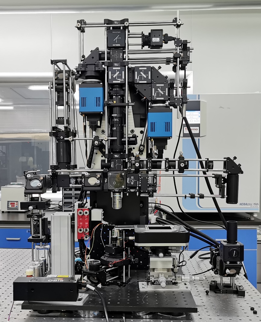 自主搭建的用于類生命機器人研究的超分辨微納觀測與操控系統