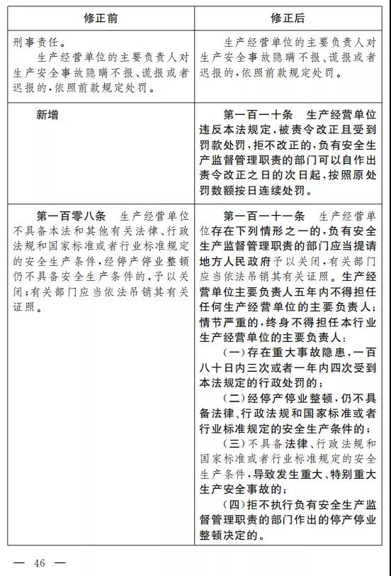 二十六、將第九十四條改為第九十五條,修改為:“生產經營單位有下列行為之一的, 責令限期改正, 處十萬元以下的罰款;逾期未改正的,責令停產停業整頓,并處十萬元以上二十萬元以下的罰款,對其直接負責的主管人員和其他直接責任人員處二萬元以上五萬元以下的罰款: