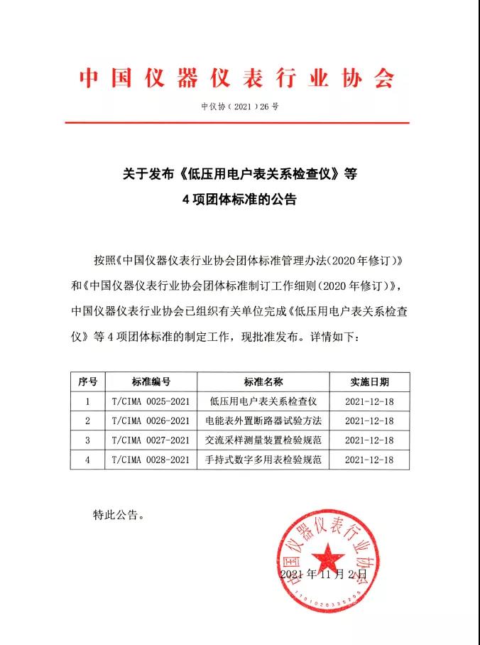 關(guān)于發(fā)布《低壓用電表關(guān)系檢查儀》等4項(xiàng)團(tuán)體標(biāo)準(zhǔn)的