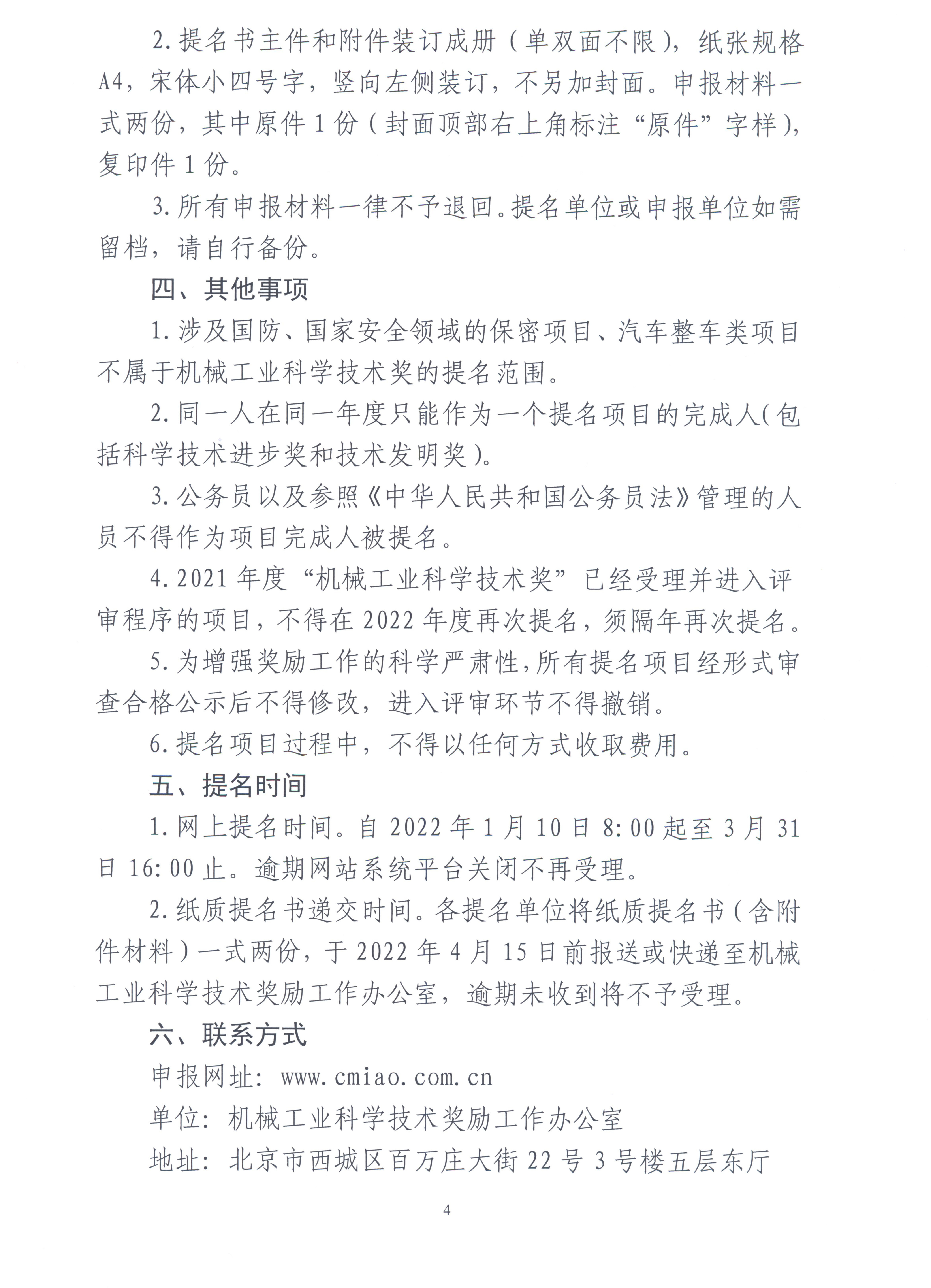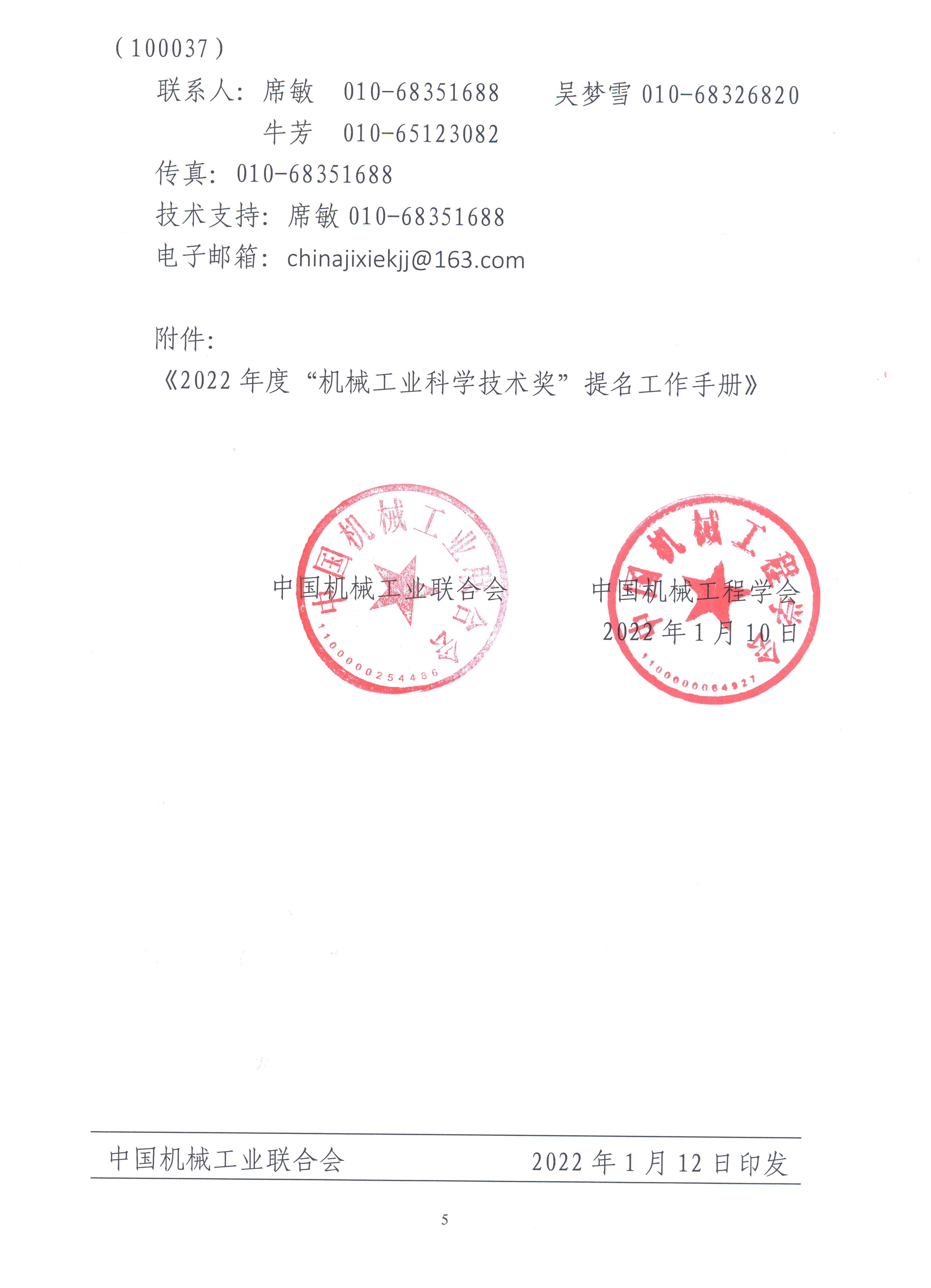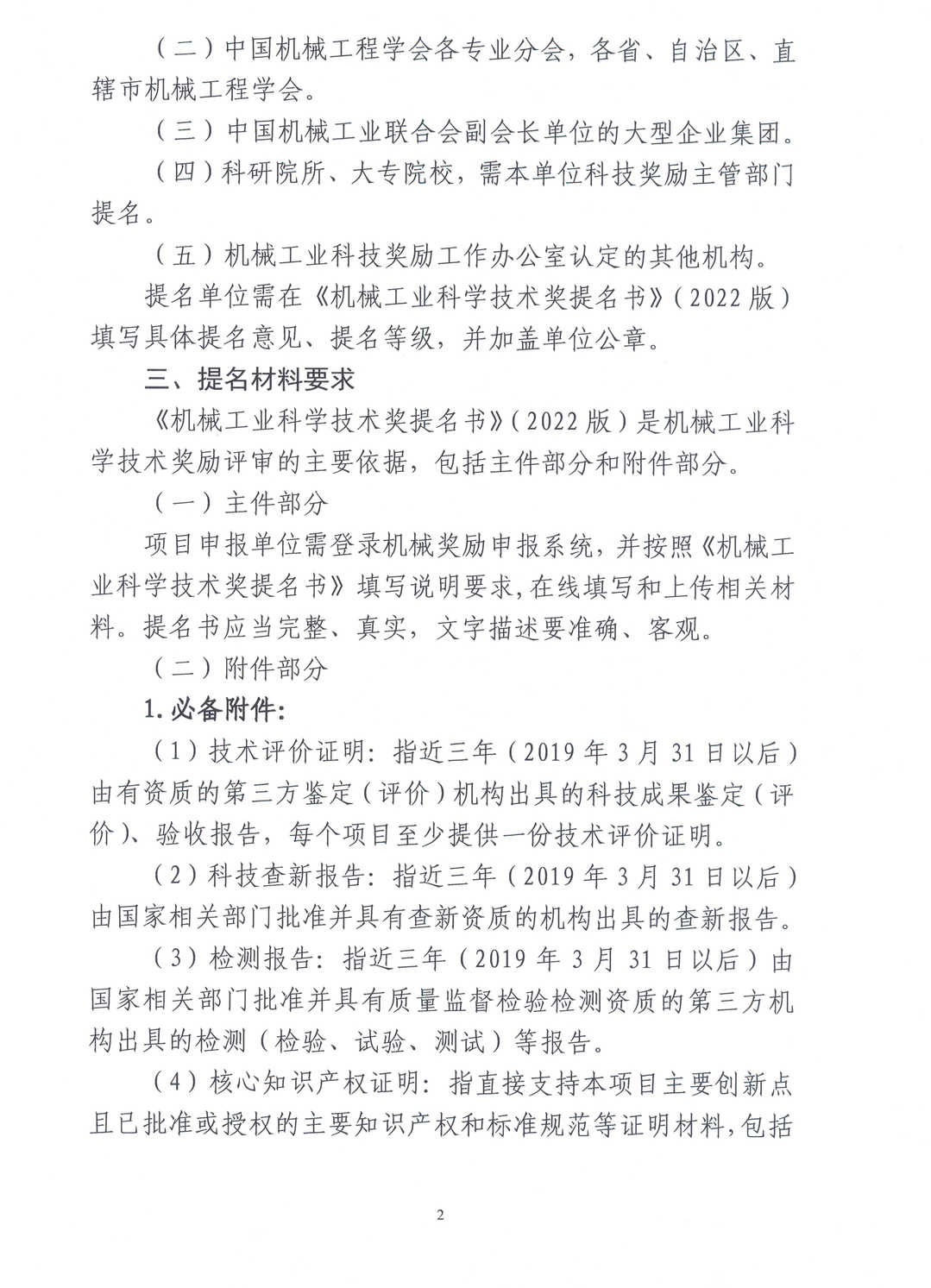 關(guān)于開(kāi)展2022年度“機(jī)械工業(yè)科學(xué)技術(shù)獎(jiǎng)”提名工作