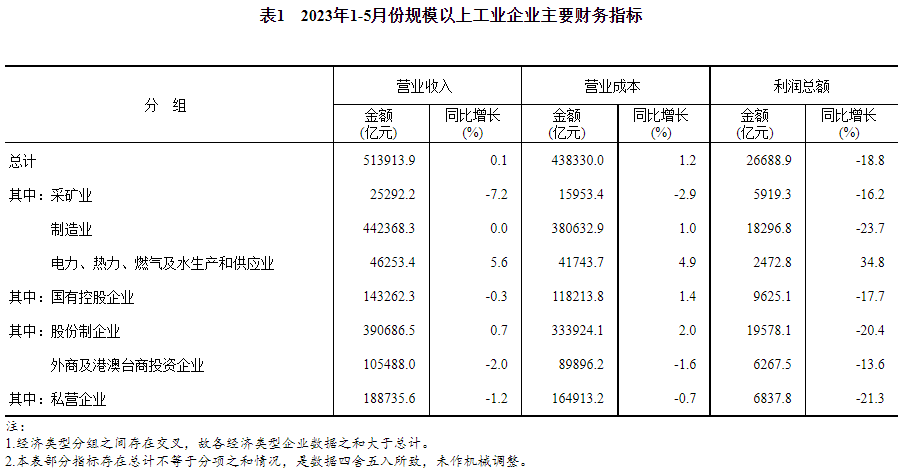 1—5月份,全國(guó)規(guī)模以上工業(yè)企業(yè)實(shí)現(xiàn)利潤(rùn)總額26688.9億元,同比下降18.8%,降幅比1—4月份收窄1.8個(gè)百分點(diǎn)。