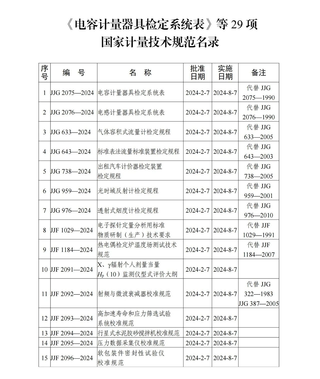《電容計(jì)量器具檢定系統(tǒng)表》等29項(xiàng)
