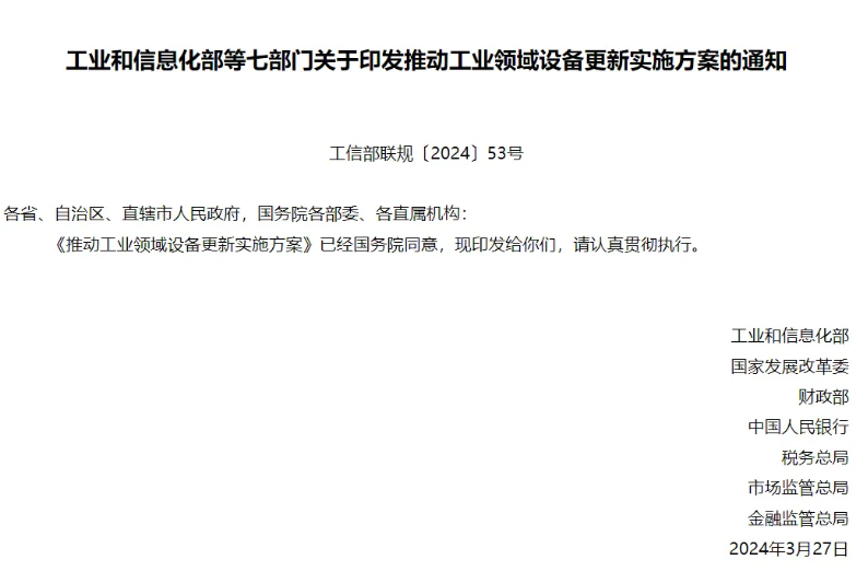 推動工業領域大規模設備更新,有利于擴大有效投資,有利于推動先進產能比重持續提升,對加快建設現代化產業體系具有重要意義。為貫徹落實黨中央、國務院決策部署,推動工業領域設備更新和技術改造,制定如下實施方案。