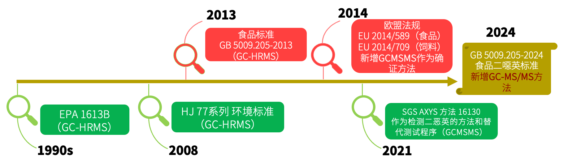 長久以來,高分辨磁質(zhì)譜(GC-HRMS)被譽為二噁英分析的“黃金標準”,國內(nèi)外二噁英檢測標準也主要以GC-HRMS為主。歐盟于2014年發(fā)布了EU 2014/589和EU 2014/709號法規(guī),具有里程碑式意義,首次將氣相色譜-三重四極桿質(zhì)譜儀(GC-MS/MS)作為評判食品和飼料中二噁英及類二噁英多氯聯(lián)苯是否符合歐盟最高限值要求的確認方法。