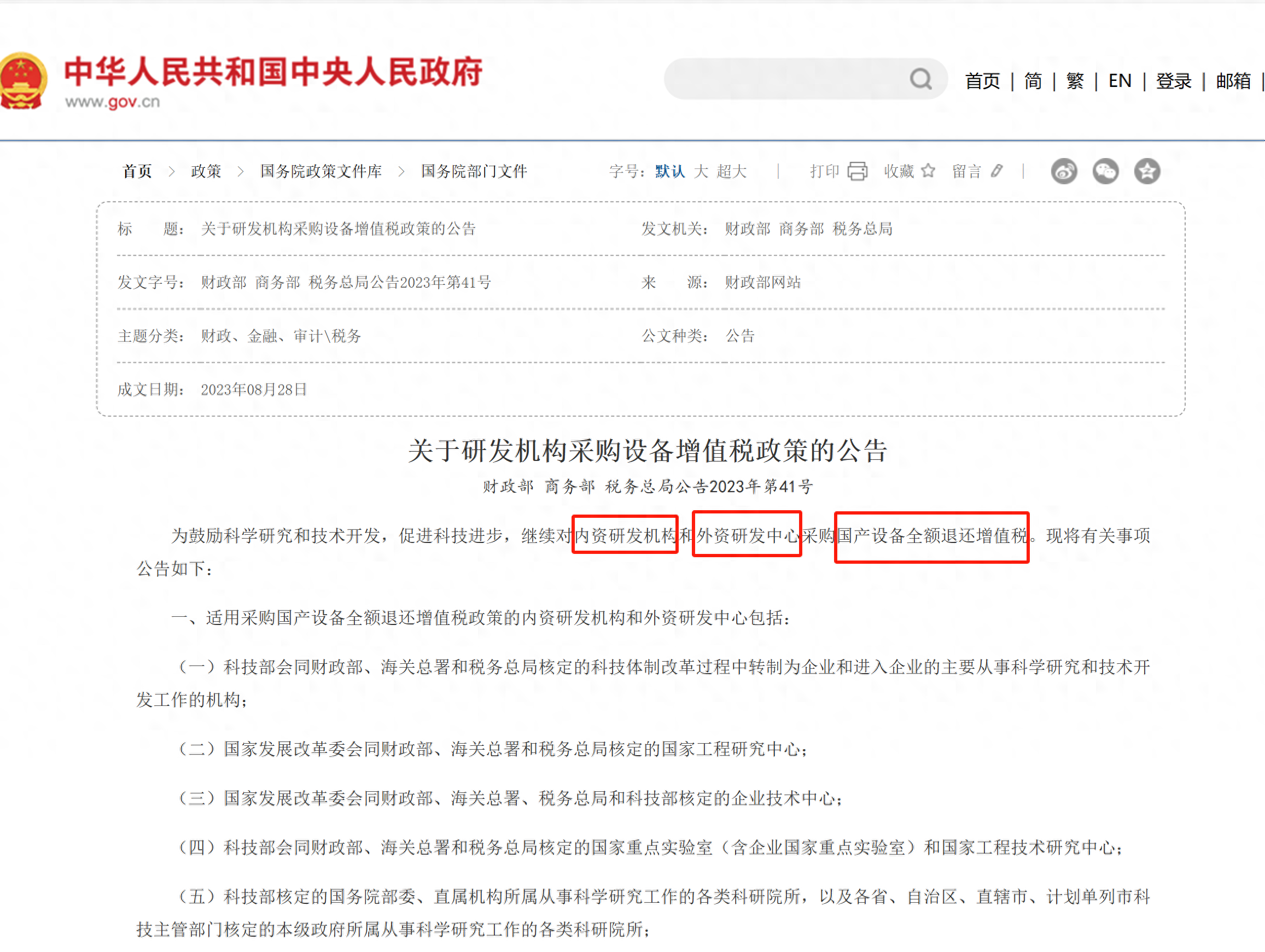 政府不僅從自身采購下手,財政部、商務部、稅務總局三部委聯合發文《關于研發機構采購設備增值稅政策的公告》明確指出內資研發機構和外資研發中心采購國產設備全額退還增值稅。也就是說在中國注冊的企業,不管企業是國內資本還是外資,只要是研發中心,采購國產設備,一律退回增值稅!國家在用真金白銀補貼國產設備!