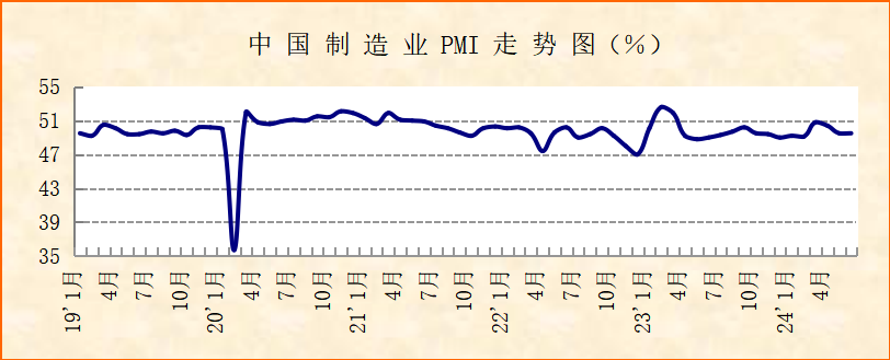 中國物流與采購聯(lián)合會(huì)、國家統(tǒng)計(jì)局服務(wù)業(yè)調(diào)查中心發(fā)布的20246月份中國制造業(yè)采購經(jīng)理指數(shù)(PMI)為49.5%,與上月持平。從分項(xiàng)指數(shù)變化來看,生產(chǎn)端穩(wěn)中有增,新動(dòng)能加快增長(zhǎng),微觀主體活力有所改善,原料成本壓力短期回落,經(jīng)濟(jì)運(yùn)行整體穩(wěn)定。但市場(chǎng)需求不足問題需進(jìn)一步重視。