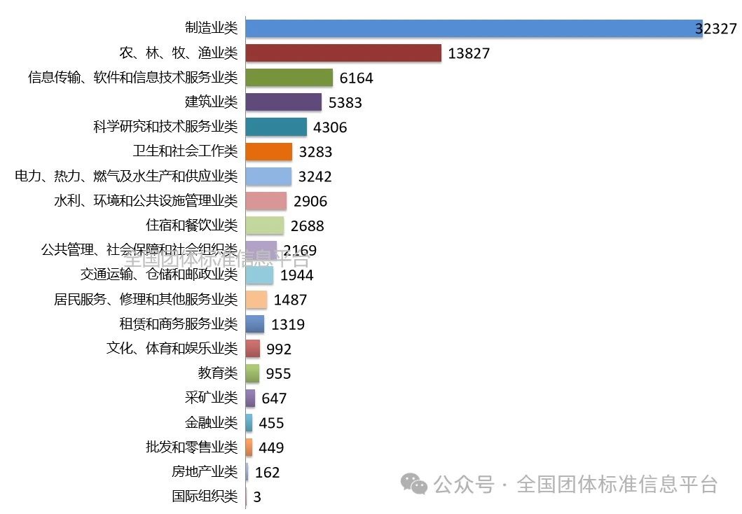 截至2024630日,從國民經濟行業劃分來看,社會團體公布團體標準涵蓋了全部20個國民經濟行業分類,其中團體標準數量最多的為制造業類,共32327項,占團體標準總數的38.16%,其次是農、林、牧、漁業類,信息傳輸、軟件和信息技術服務業類等行業。
