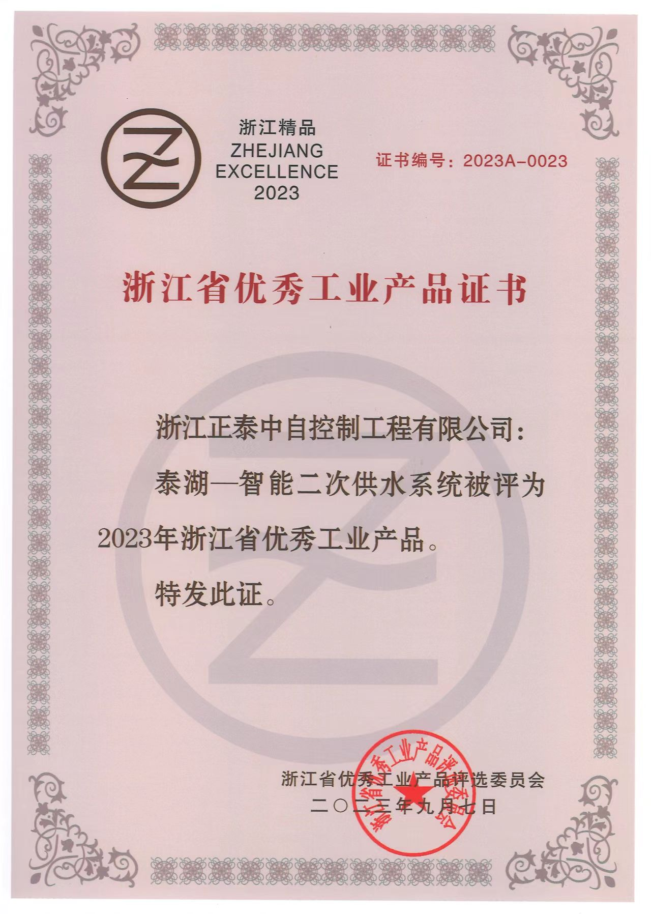 產品運用的專業設備管理軟件獲水利部昆侖獎。憑借卓越的產品性能和創新技術,泰湖-智能二次供水系統榮獲“2023年浙江省優秀工業產品”殊榮,成為打造浙江省優秀工業產品的一張金名片。