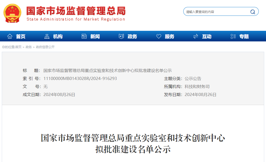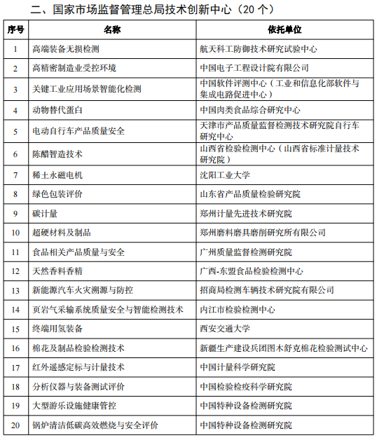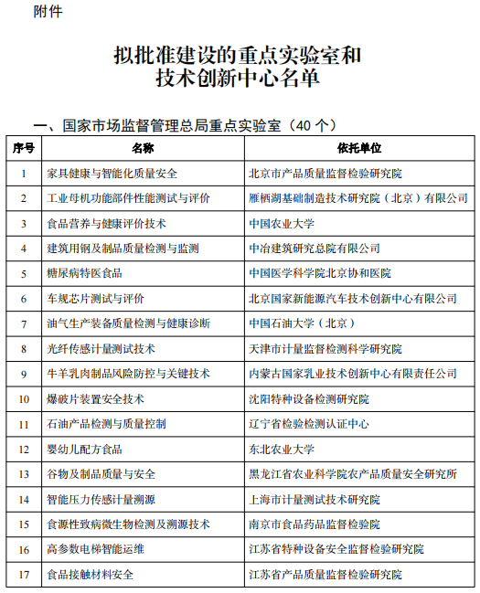 國家市場監(jiān)督管理總局重點(diǎn)實驗室和技術(shù)創(chuàng)新中心擬批準(zhǔn)