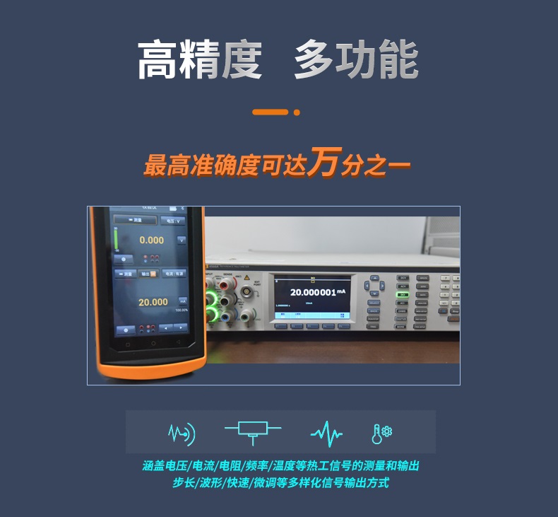 支持各類熱工標準信號的測量與輸出,最高準確度 0.01