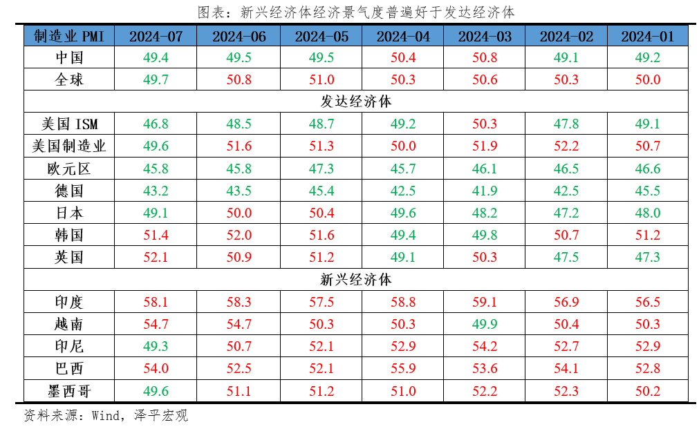 受美國持續補庫推動,全球制造業回暖,新興經濟體好于多數發達經濟體,服務業恢復好于制造業。全球制造業PMI持續位于榮枯線上,均值為50.5%;服務業為52.8%。標普美國制造業連續6個月擴張,均值51.3%;歐元區制造業PMI均值46.3%,法國、德國分別為45.6%43.6%。巴西、墨西哥、越南、印尼、菲律賓制造業PMI均值分別為53.4%51.3%51.0%52.6%51.3%