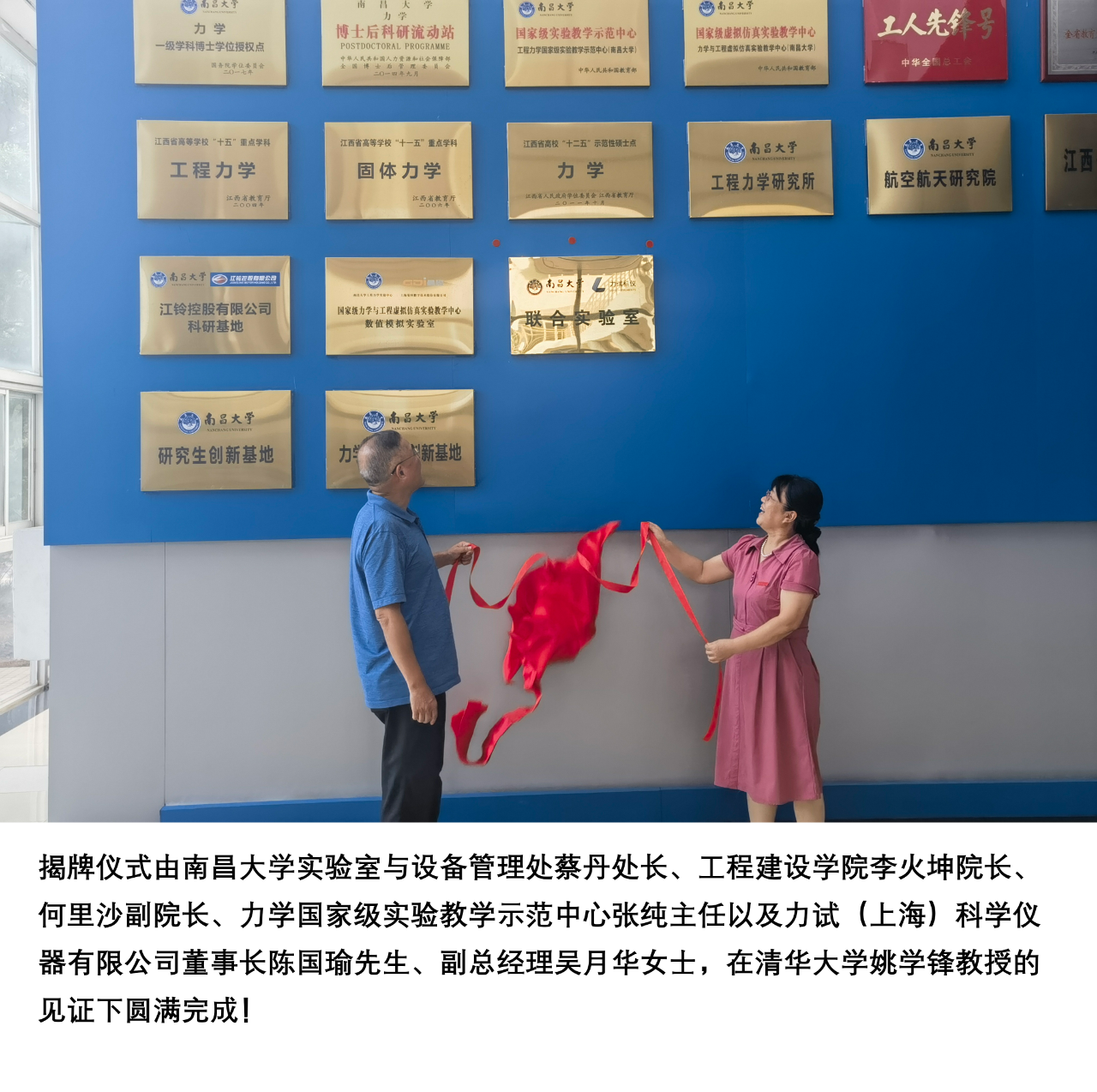 2024年9月27日,“南昌大學(xué)-力試(上海)科學(xué)儀器有限公司聯(lián)合實(shí)驗(yàn)室”在南昌大學(xué)工程力學(xué)實(shí)驗(yàn)中心正式揭牌。南昌大學(xué)-力試科儀聯(lián)合實(shí)驗(yàn)室(簡(jiǎn)稱“聯(lián)合實(shí)驗(yàn)室”)是南昌大學(xué)工程力學(xué)實(shí)驗(yàn)中心與力試(上海)科學(xué)儀器有限公司本著“資源共享、合作共贏、共同發(fā)展”的原則,為建立長(zhǎng)期、穩(wěn)定、可持續(xù)發(fā)展的產(chǎn)學(xué)研合作伙伴關(guān)系,開展校企合作的重要舉措。聯(lián)合實(shí)驗(yàn)室將致力于材料力學(xué)性能檢測(cè)和新實(shí)驗(yàn)教學(xué)項(xiàng)目開發(fā),共同促進(jìn)材料測(cè)試水平和技術(shù)發(fā)展以及提升實(shí)驗(yàn)教學(xué)條件,推動(dòng)材料力學(xué)性能檢測(cè)全過(guò)程自主可控,服務(wù)國(guó)家所需,并促進(jìn)相關(guān)人才培養(yǎng)。聯(lián)合實(shí)驗(yàn)室的成立,是校企合作的新拓展,雙方在未來(lái)將深入合作,發(fā)揮各自優(yōu)勢(shì),進(jìn)行更多前沿性技術(shù)創(chuàng)新和應(yīng)用嘗試。