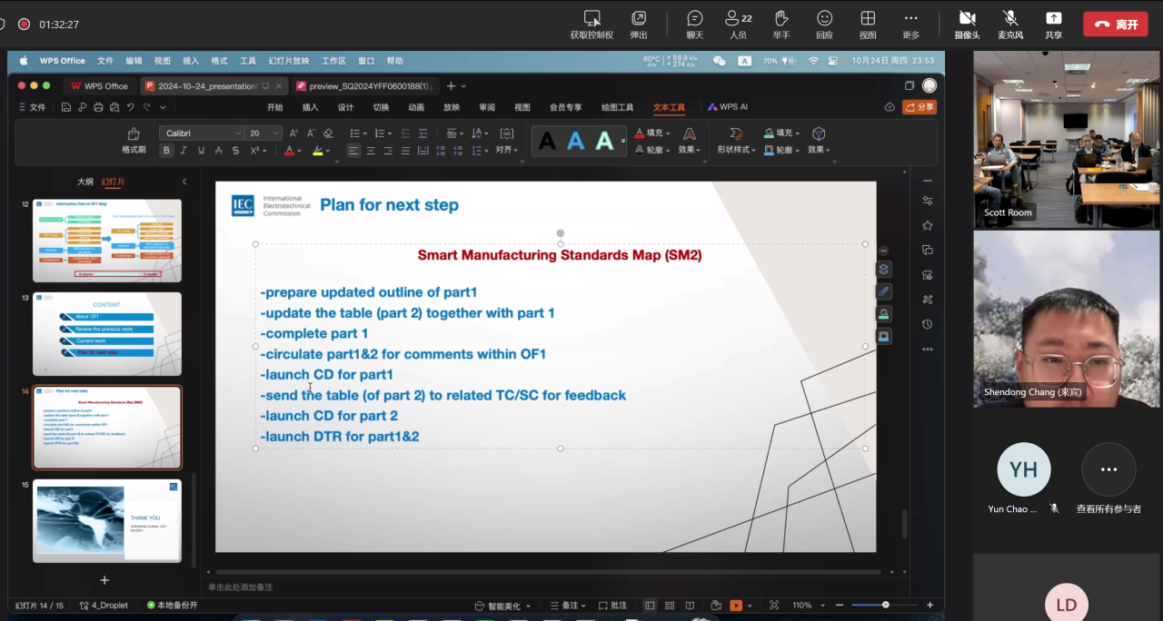 儀綜所常莘東工程師作為OF1“智能制造標準圖開放論壇組聯(lián)合召集人,與德國專家Udo Bausch先生共同組織召開了工作組會議。會上主要介紹了ISO/IEC TR 63306《智能制造標準圖》系列標準的修訂背景,討論了第二版標準映射圖的主要維度。會議建議標準圖維度應(yīng)與ISO/IEC 62264《企業(yè)控制系統(tǒng)集成》、ISO/IEC 63339《智能制造統(tǒng)一參考模型》保持一致,并盡快啟動修訂。
