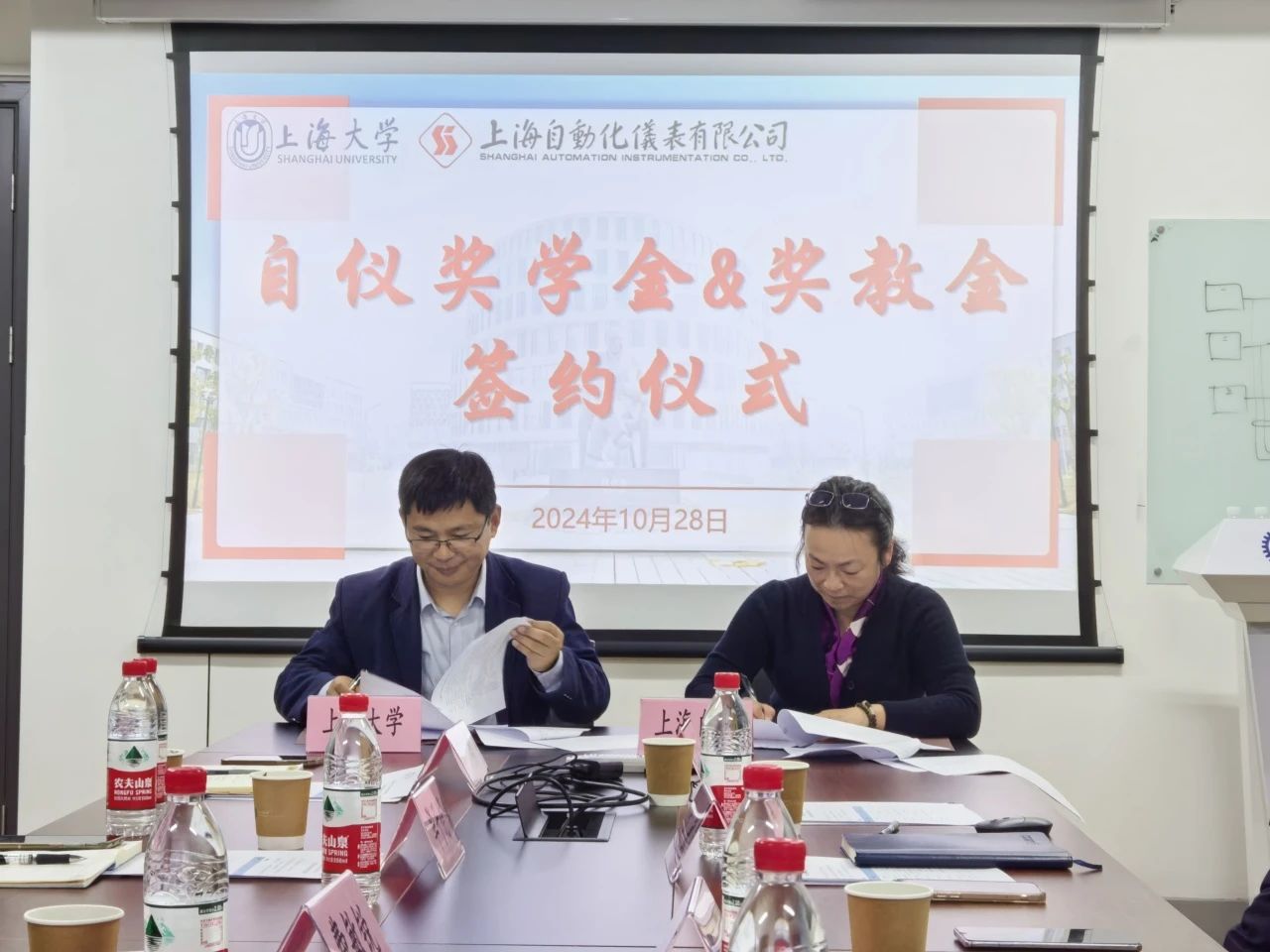 10月28日,上海自儀與上海大學(xué)機電工程與自動化學(xué)院(簡稱:機自學(xué)院)“自儀獎學(xué)金&獎教金”簽約儀式舉行。雙方共同簽署了《上海大學(xué)教育發(fā)展基金會捐贈協(xié)議書》以及《合作培養(yǎng)學(xué)生和資助教學(xué)協(xié)議書》,就繼續(xù)開展本科生、研究生合作培養(yǎng)及資助教育教學(xué)達(dá)成一致意見。上海大學(xué)自強書院院長費敏銳,機自學(xué)院副院長華子愷,自動化系黨總支書記邵勇,公司副總經(jīng)理陳凱,黨委副書記、紀(jì)委書記、工會主席章敏,以及學(xué)生代表參加簽約儀式。