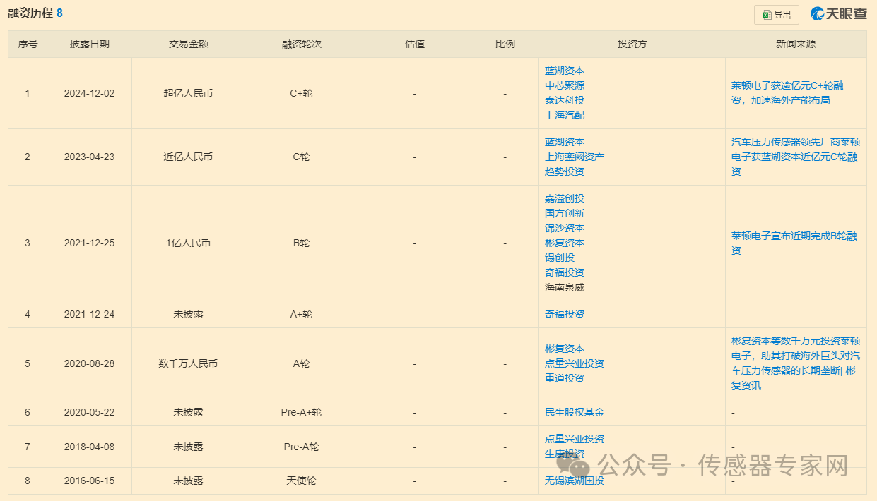 萊頓電子成立于20099月,是一家汽車壓力傳感器廠商,專注于壓力傳感器的研發(fā)與制造。經(jīng)過十余年的潛心研發(fā)與市場(chǎng)拓展,該公司已成為中國(guó)極少數(shù)掌握涵蓋微壓至超高壓全量程范圍的工藝技術(shù)(厚膜、MEMS、薄膜、硅微熔)并可以自主設(shè)計(jì)ASIC芯片的制造商,其產(chǎn)品技術(shù)指標(biāo)處于國(guó)際領(lǐng)先水平,生產(chǎn)規(guī)模在國(guó)內(nèi)名列前茅。