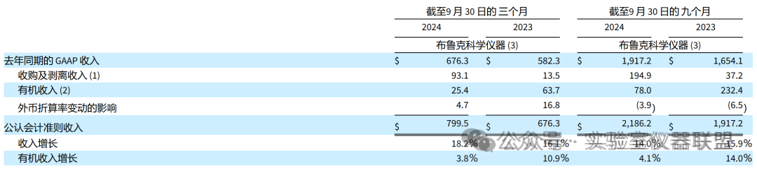 根據報告,布魯克 2024 年第三季度的收入為 8.644 億美元,與 2023 年第三季度的 7.428 億美元相比增長 16.4%2024 年第三季度,收入同比有機增長 3.1%,固定匯率 (CER) 收入增長 15.7%。收購收入增長 12.5%,外幣折算產生 0.7% 的有利影響。
