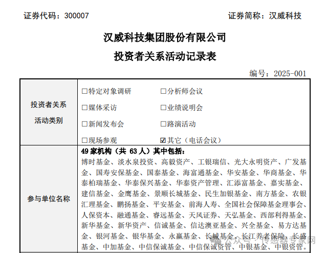 1月15日,漢威科技獲49家投資機(jī)構(gòu)調(diào)研,人形機(jī)器人領(lǐng)域相關(guān)傳感器產(chǎn)品,尤其是旗下蘇州能斯達(dá)公司柔性傳感器產(chǎn)品,備受投資者關(guān)注。漢威科技透露柔性傳感器產(chǎn)品產(chǎn)線飽和,2025年將投入新產(chǎn)線運(yùn)行。