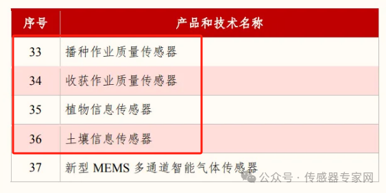 《目錄》儀器儀表領域中,基礎零部件和元器件共計37種,其中傳感器20種,有4種農業傳感器被點名列入,分別是:播種作業資料傳感器、收獲作業資料傳感器、植物信息傳感器、土壤信息傳感器。