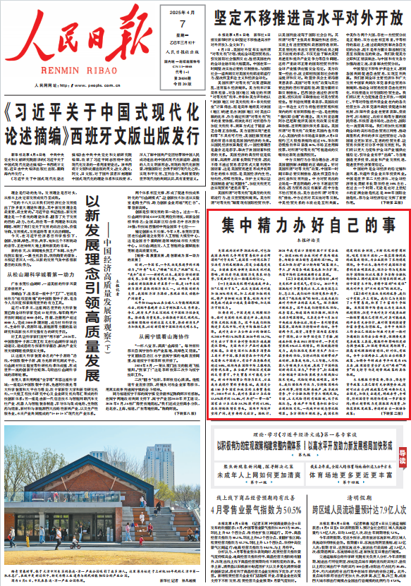 發布時間:2025-4-8     來源:《人民日報》2025年4月7日第1版    編輯:衡盛楠    審核:張經緯 王靜