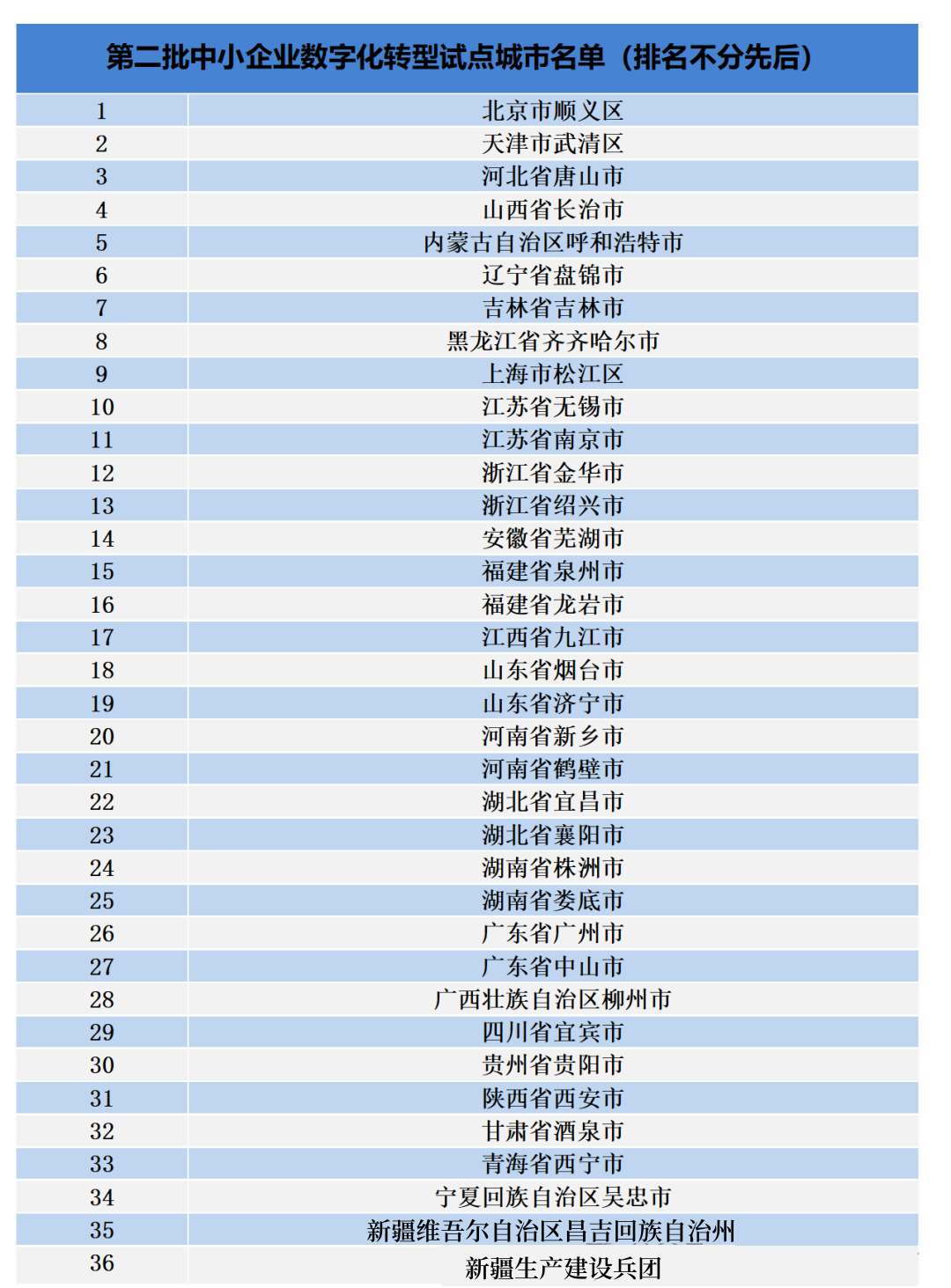 附中小企業(yè)數(shù)字化轉(zhuǎn)型城市試點(diǎn)前兩批名單如下: