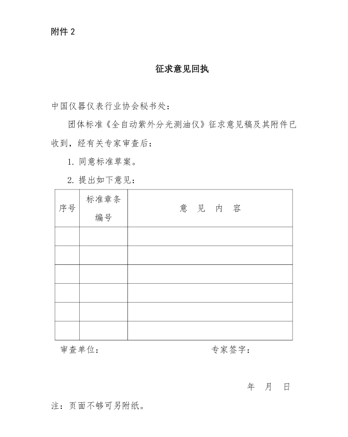2. 征求意見回執(zhí)—— 全自動(dòng)紫外分光測(cè)油儀