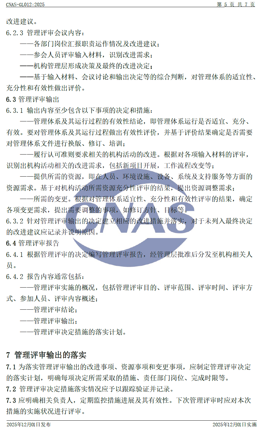 CNAS-GL012:2025 《實(shí)驗(yàn)室和檢驗(yàn)機(jī)構(gòu)管理評(píng)審指南》與CNAS-GL012:2018相比,除結(jié)構(gòu)調(diào)整和編輯性改動(dòng)外,主要技術(shù)變化如下: